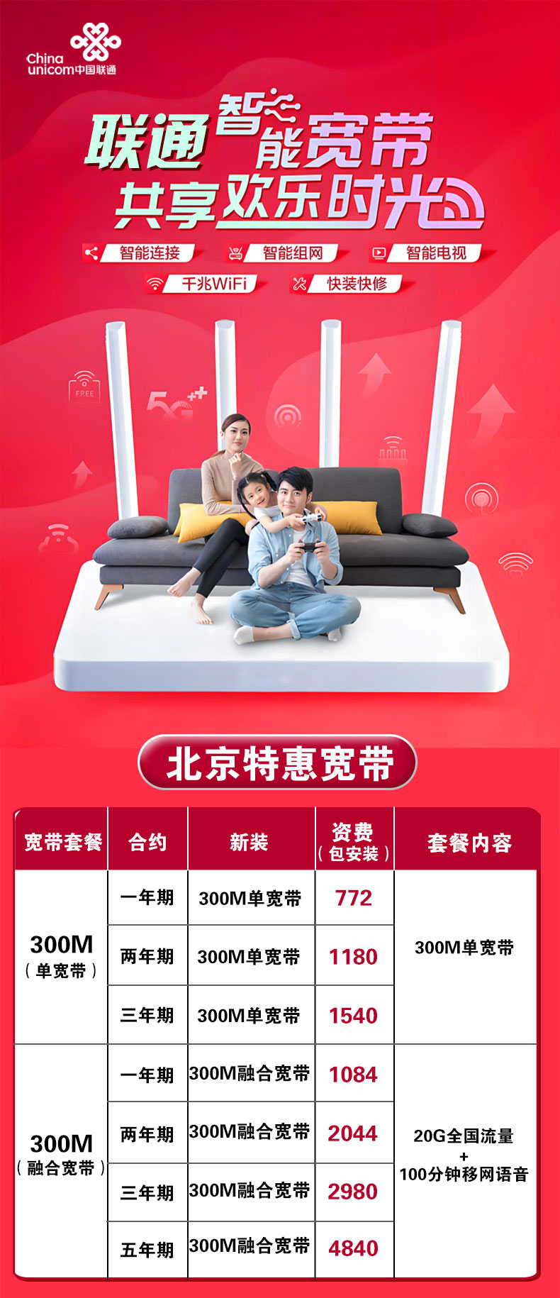 北京联通融合宽带300M